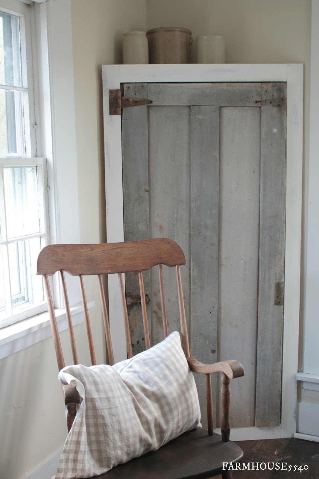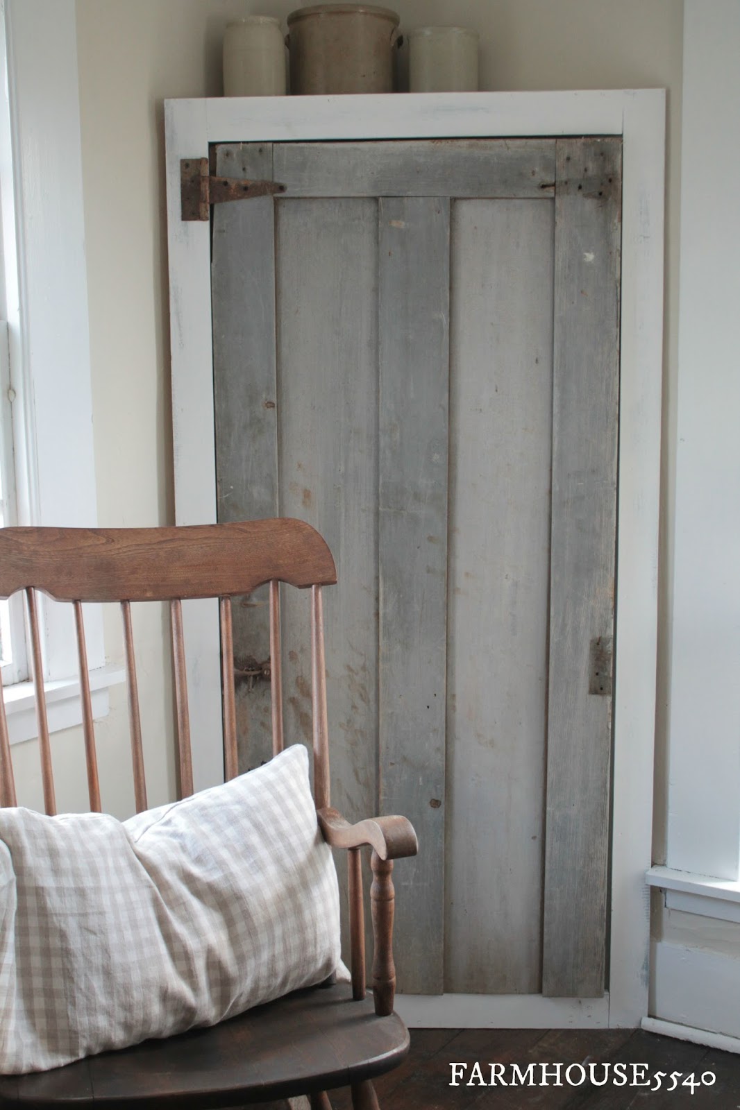 It is such an amazing door, with it's original pale blue milk paint and old hardware.