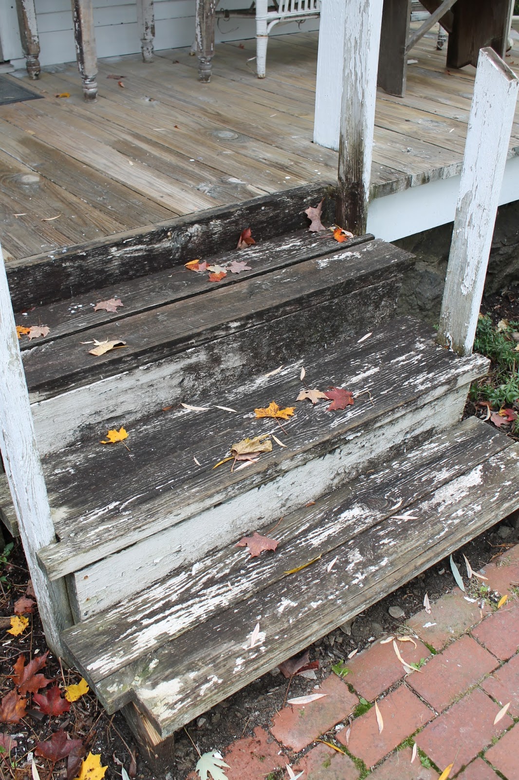 The day we took these steps off was one of the best days of my life, they were not original to the house and they weren't well built and they were black with rot. They also didn't seem to fit the space right so we wanted wider ones that seemed more fitting and appropriate to the time period our house was built.