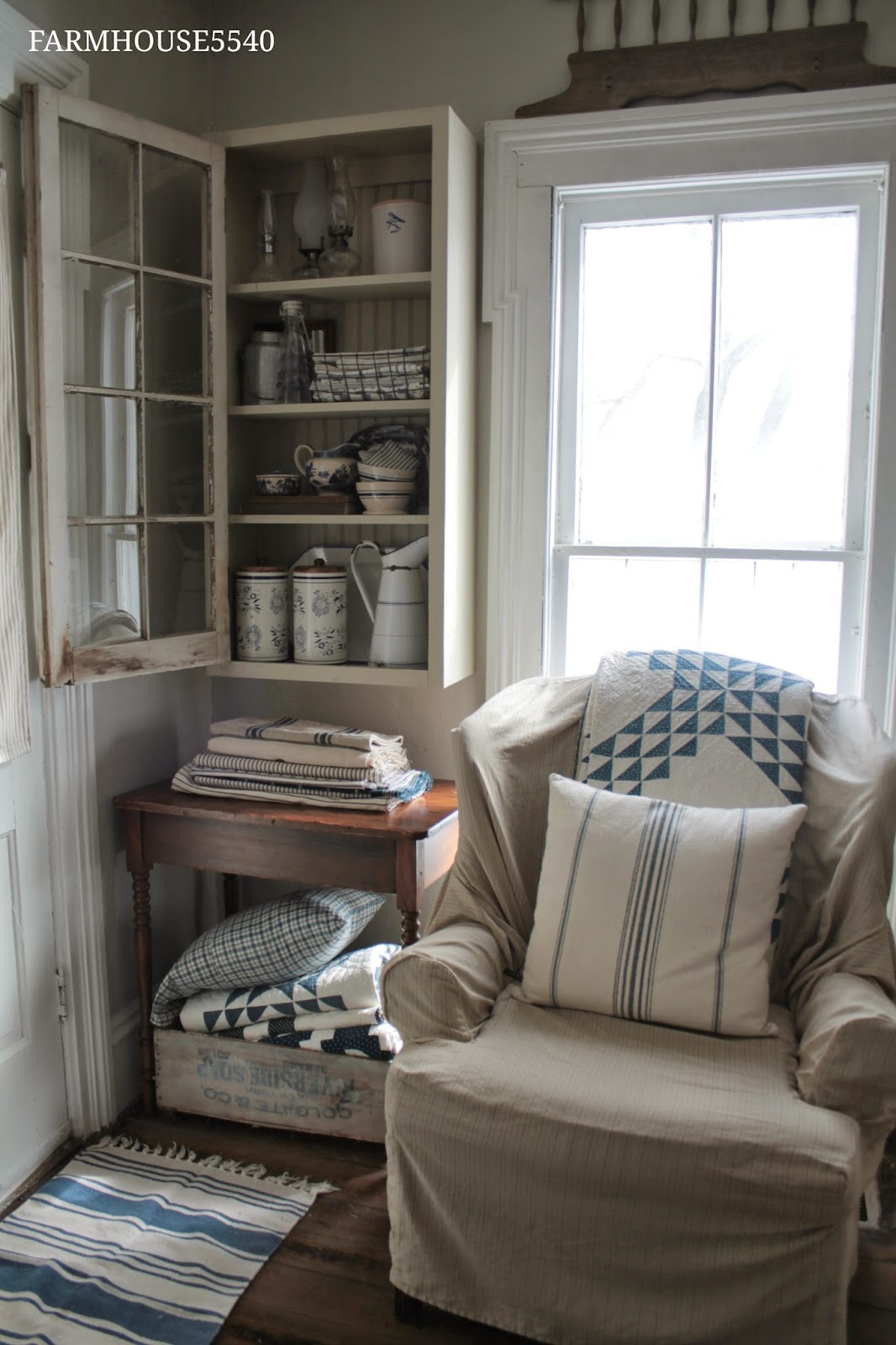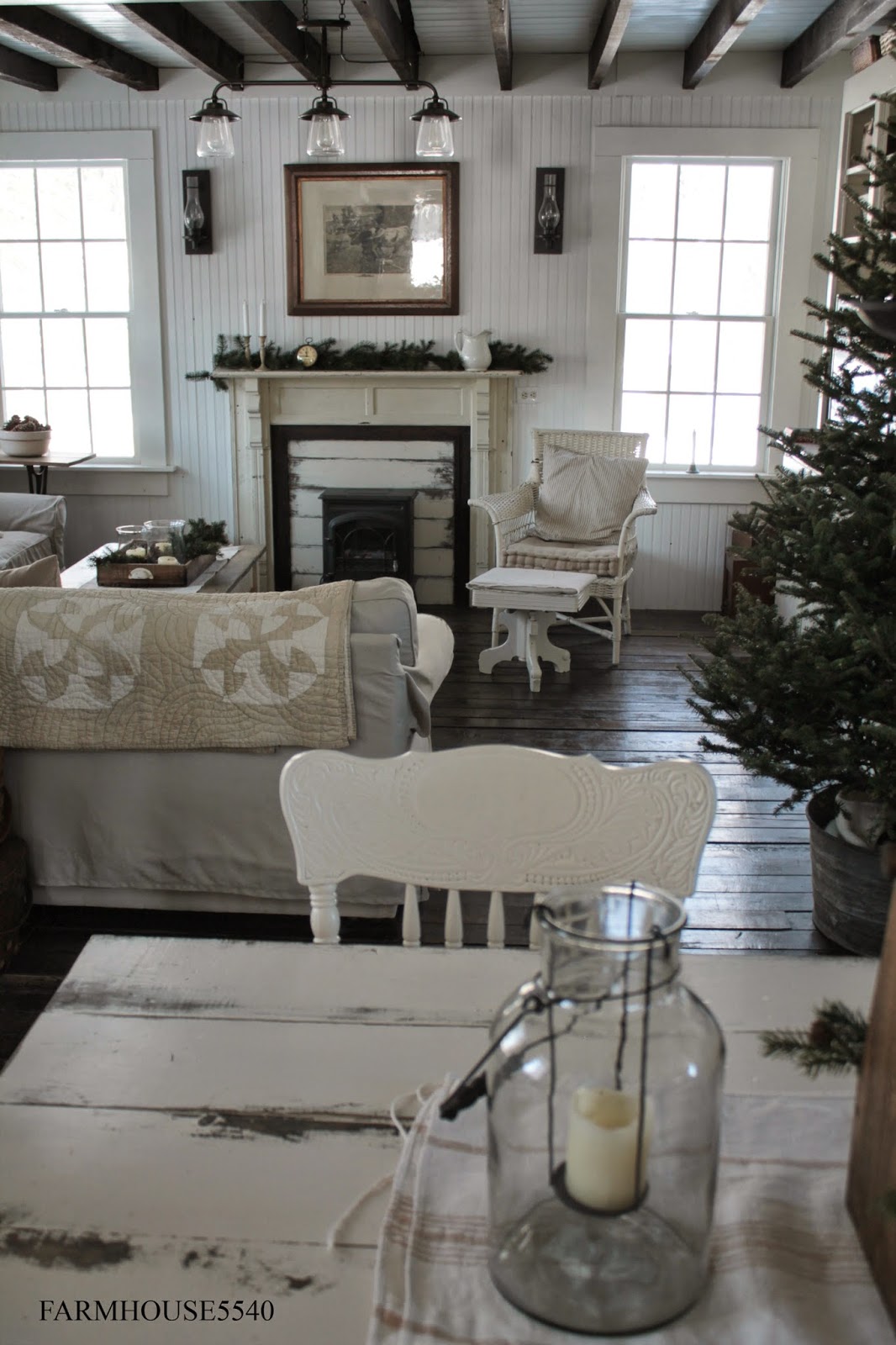 Another new thing in this room is the little space heater in the fireplace. Our furnace on the kitchen side of the house died and we can't get a new one just yet so we moved the little space heater from the living room into here. We have two furnaces (my long time followers know that our farmhouse was turned into a duplex at one point and we turned it back into one dwelling) so our bedrooms still have heat but the kitchen and family room are on the chilly side to say the least. We bought a ceramic radiator style electric heater and it really does help though. Leave it to us to have our furnace break on the couple coldest weeks of the year, the high has been 10 degrees the past two weeks.