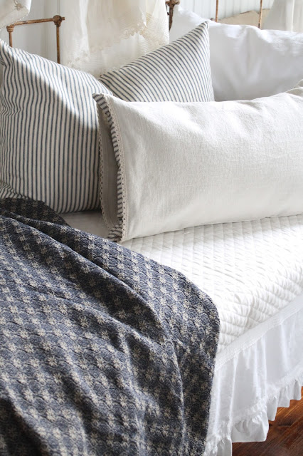 My absolute favorite type of pillow is a blue and white ticking feather pillow...they are just perfection in my opinion and will forever be in style.